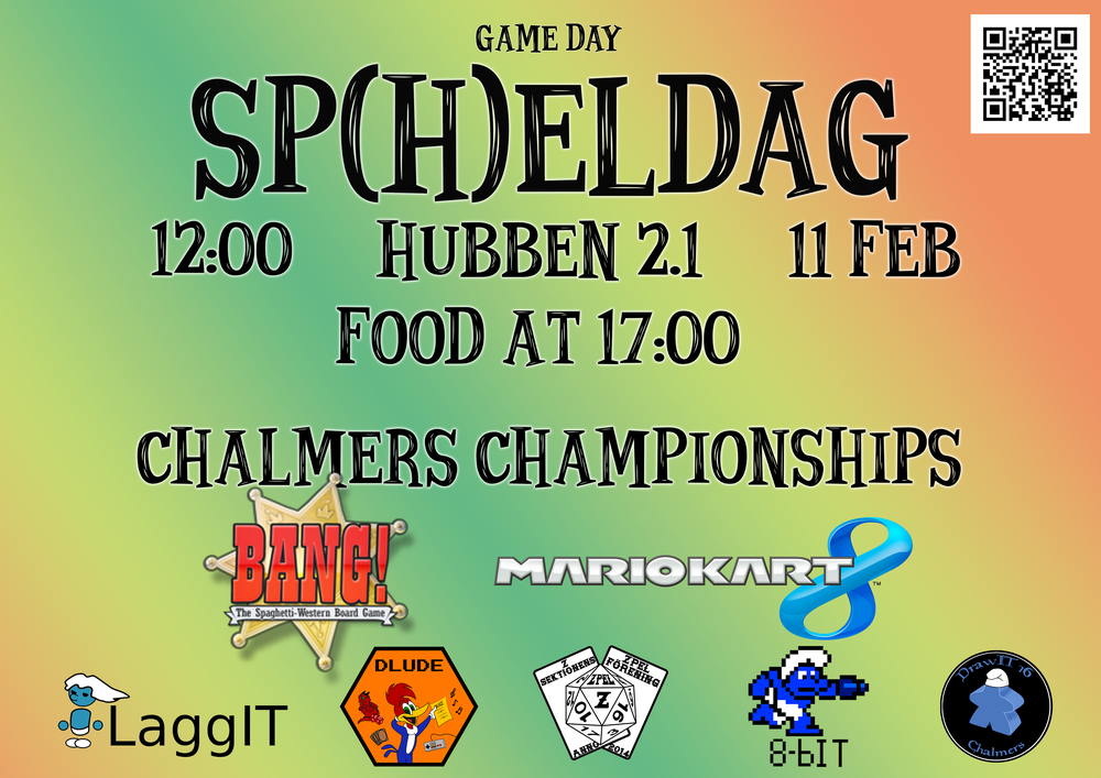 Lördag LV4 (11:e Feb) är det Sp(h)eldag! DrawIT, tillsammans med 8-bIT, LaggIT, Zpel och DLude, arrar spel en hel dag!
