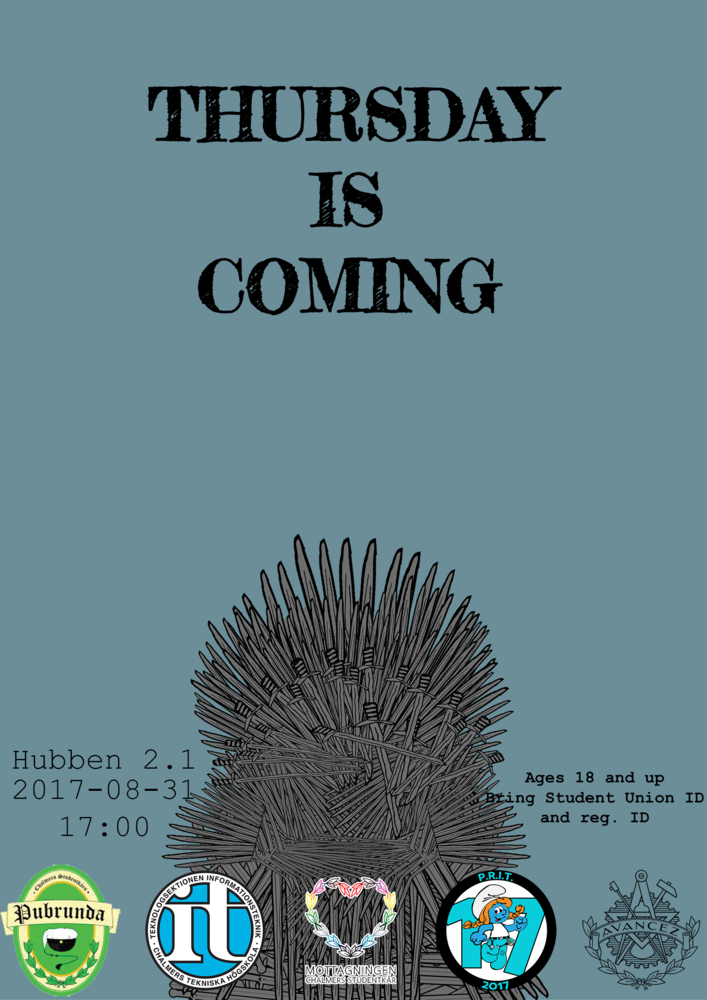 Det finns en gammal legend på Chalmers som talar om en händelse som endast sker då sommaren tar slut. Vi i P.R.I.T. bjuder in gammal som ny för att uppleva detta legendariska event, Pubrundan i LP1! Vi håller dörren öpen på torsdag den 31:e för teknologer och icke-teknologer från alla Chalmers riken.