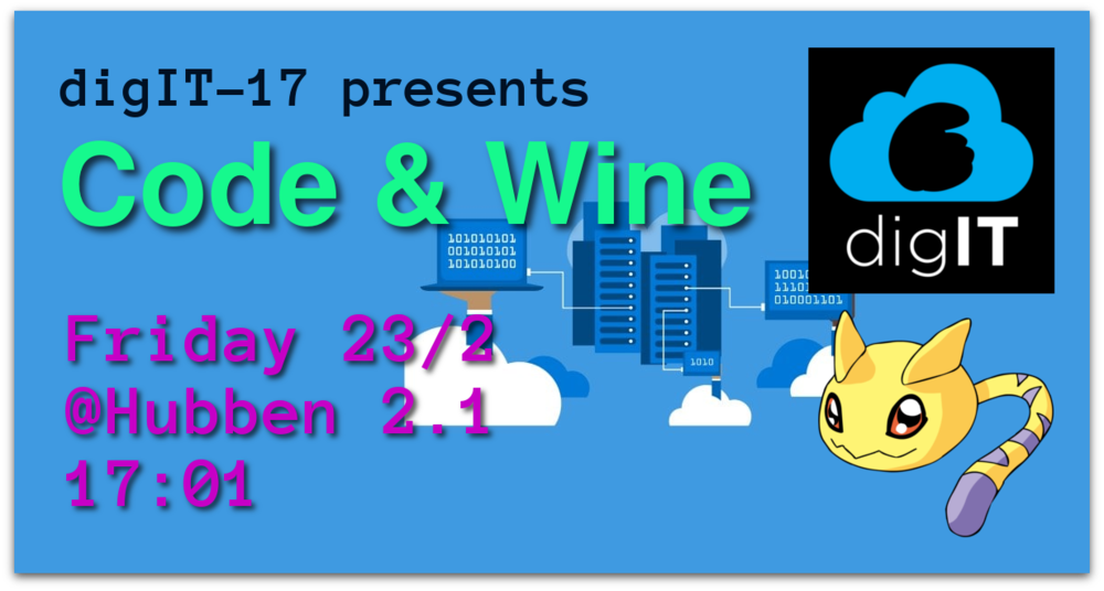 Ta med din dator och häng med digIT denna kväll, och koda iväg till ett glas vin, eller vilken annan dryck du vill. Du är hjärtligt välkommen att: