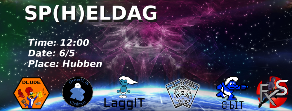 Sp(h)eldagen är en heldag då man kan spela alla möjliga sorters spel, både analoga och digitala, och även socialisera sig med de andra sektionerna här på campus. Dock är det långt ifrån enbart för studenter; alla är hjärtligt välkomna!
