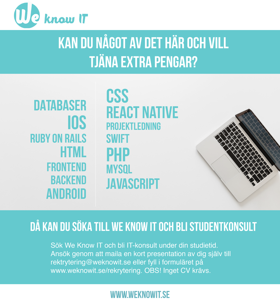 Vill du ha ett extrajobb och tjäna pengar medan du studerar? Vill du utveckla dina färdigheter inom programmering? Vill du redan nu testa på hur det känns att arbeta som IT-konsult?