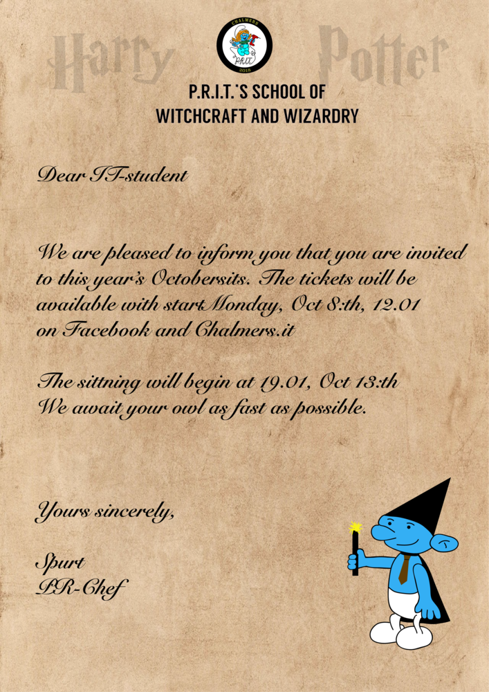 Don’t be a Muggle, kom till P.R.I.T.s sittning 13:de okt.