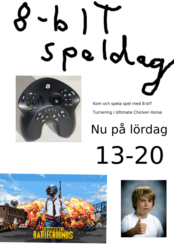 Nu på lördag drar 8-bIT fram konsollerna och tv-apparaterna i Hubben. Vi håller på åtminstone hela eftermiddagen och enklare mat kommer finnas för en rimlig peng.