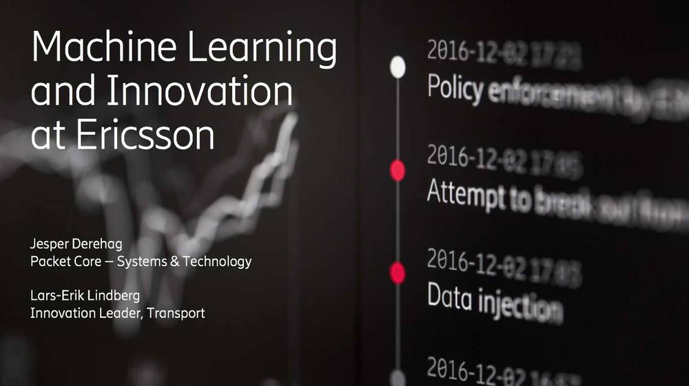 This talk will be about how Ericsson work with Machine Learning. They will be showcasing a few projects they have done at the Systems & Technology group, together with discussing some of the possibilities as well as some of the engineering challenges of bringing Machine Learning into a real and live production system.